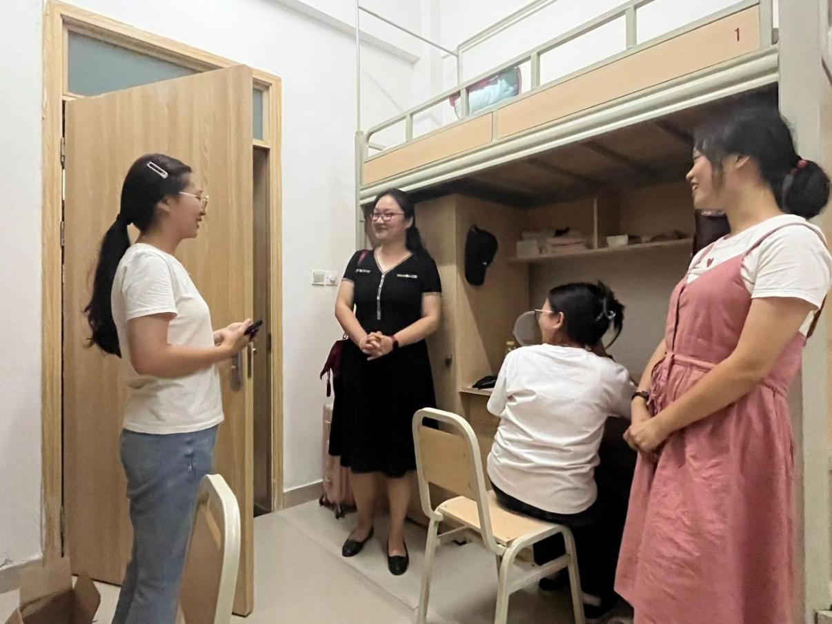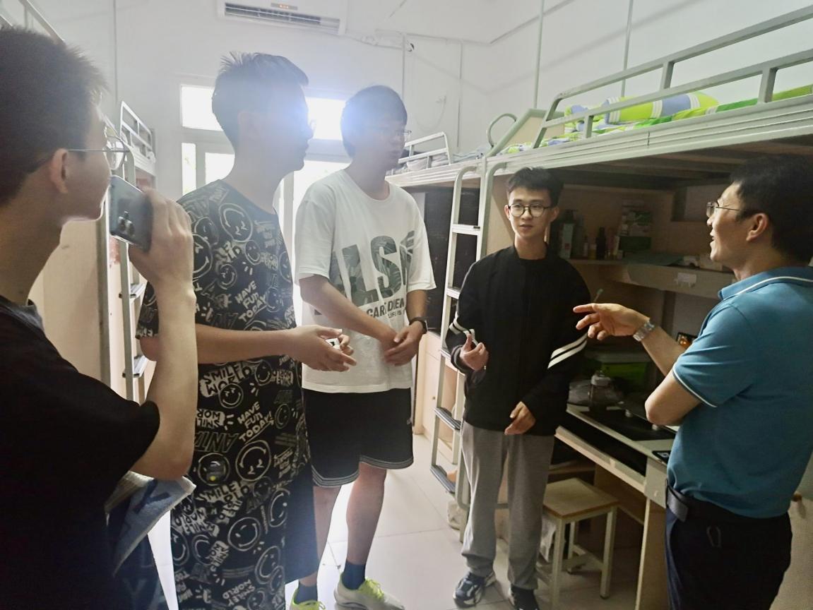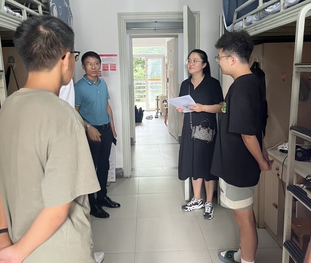 走访过程中,每到一个宿舍,学院领导都亲切地与新生进行交谈,了解同学们来校后的感受、对学校的印象等,深入了解了新生对学校的适应程度,耐心倾听新生们的反馈。并嘱咐同学们,宿舍是同学们的第二个家,舍友是同学们学习生活中最亲密的伙伴,同学间要相互理解、互相包容,尽快适应新环境、新生活。同时也关切提醒同学们要注意卫生、规律作息、适度运动,养成积极向上的心态。勉励新生们在学习上多下功夫,认真学习专业知识,尽快融入管理学院这个大家庭。