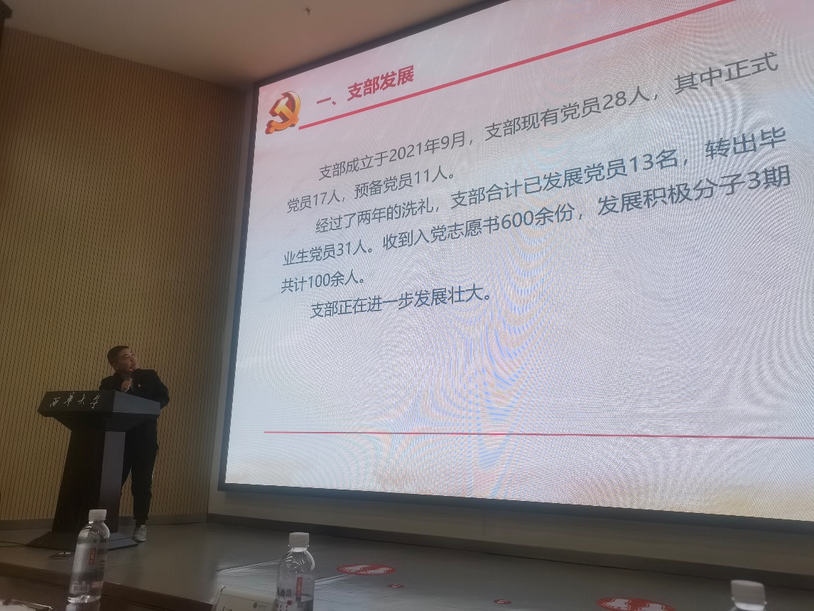 宜宾校区学生党支部于2021年9月成立,经过2年的发展壮大,支部现有党员28名,其中党员教师5名。会上,李忠同志代表宜宾校区学生支部委员会从支部发展、建设情况和特色活动三个方面作汇报,并详细介绍了本次党建品牌创建活动。