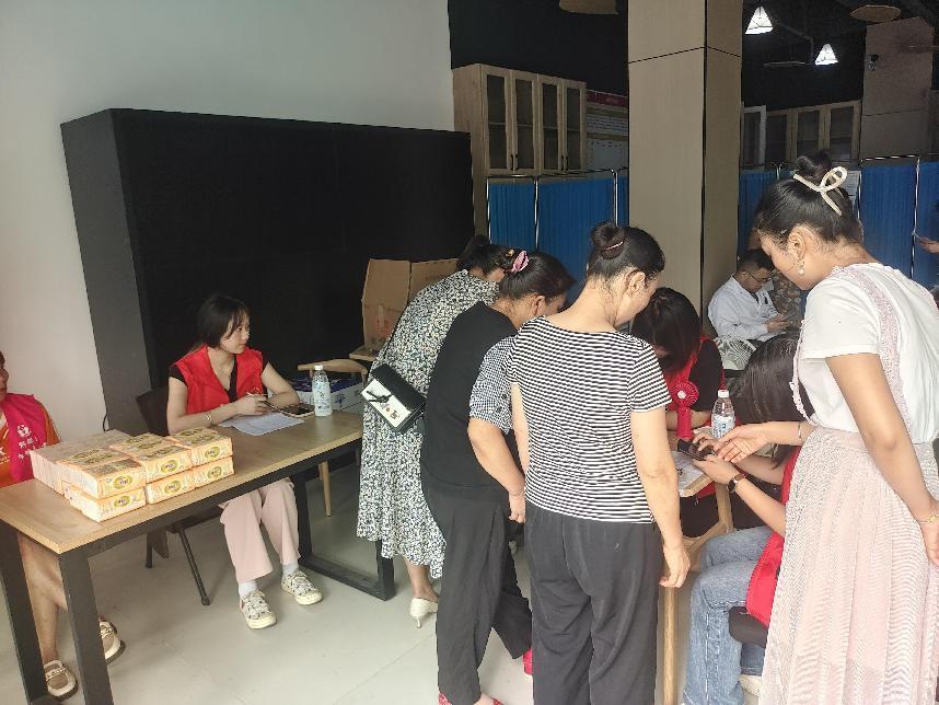 9:30,医务工作人员到场后,同学们按照分工,紧锣密鼓地引导到场人员扫码、筛查。团支部志愿者们热心且亲切,对部分不熟悉扫码操作等流程的群众给予贴心的帮助,为筛查进程有条不紊的进行提供了保障,为医务人员的工作打好基础,确保每位有需要的群众都能顺利参与到“两癌筛查”中。