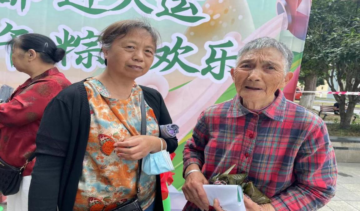 除此之外,志愿者还为社区居民准备了粽子制作与品尝活动。志愿者们邀请居民一起包制粽子,大家亲身感受端午节的独特魅力。大家手中粽叶舞动,麻绳穿梭,一个个可爱、鲜绿的粽子就诞生了。制作完毕之后,大家聚在一起共同分享劳动成果,现场一片欢声笑语,其乐融融,过节气氛尤为浓烈。