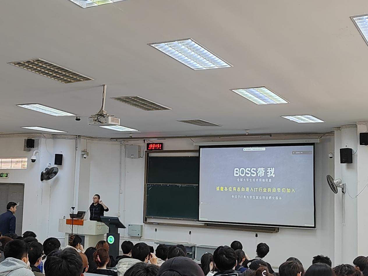 最后,马力遥学长邀请了来自“BOSS带我”项目联合创始人——老王(kimi),为同学们作了就业发展前瞻。他提到,我们的终极目标是要找到一份适合自己的工作,应该考虑为就业做准备,提前去实习,或者出国留学,都是不错的选择。同时,他指出,要把找工作当作是工作,找工作本身就是一件值得投入大量精力的事。