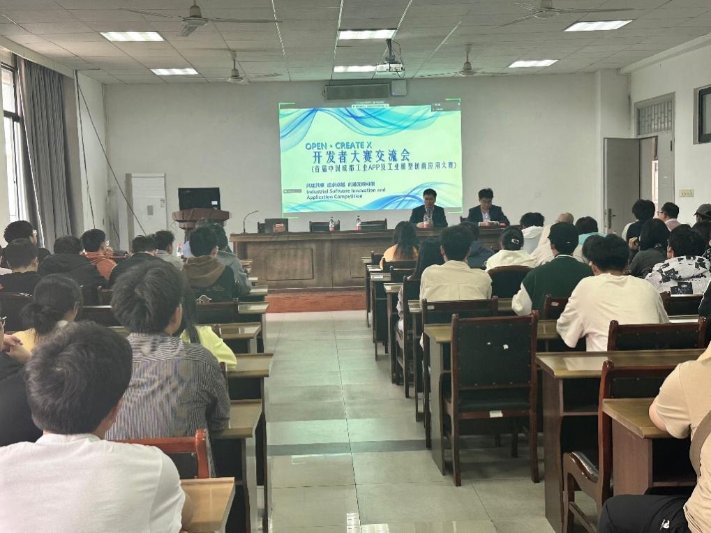 黎小华一行向到场师生介绍了大赛组织的背景、大赛的参赛方式等,并积极解答了现场同学的问题。在交流会现场,参赛者们踊跃发言,分享了在开发工业APP及工业模型过程中的宝贵经验和心得体会。