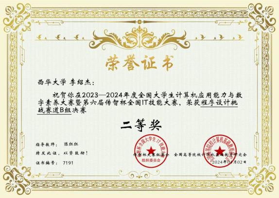 以下为获奖证书:
