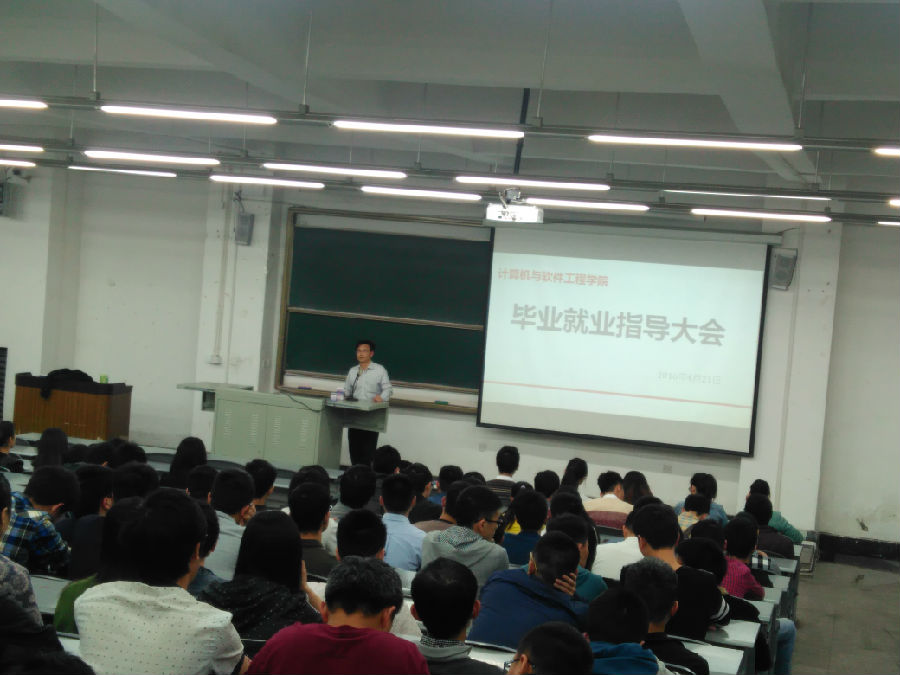 4月21日下午3:00,伟德bv国际体育在六教B108教室举办2013级全体学生就业、考研动员大会。毕书记、各班辅导员、以及蓝桥杯组委会刘主任等出席了本次会议,2013级全体学生参加了会议。