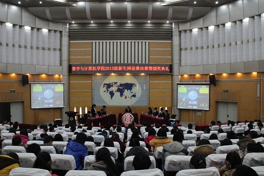 12月6日晚,数学与计算机学院2013级新生辩论赛决赛暨颁奖典礼在四教报告厅举行,学院团委书记郭聪、团委副书记奉姣,2013级辅导员秦谊、青树,2013级新生以及团委学生会全体成员参加了此次活动。最终,2013级计算机科学与技术专业3班代表队荣获冠军。