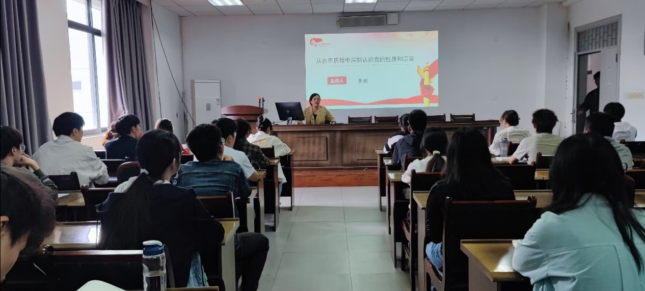 本次课程主题为“从百年历程中深刻认识党的性质和宗旨”,课堂教学从“为什么要入党?入党的动机是什么?什么是入党动机?”引入,从“初心和使命”、“四个伟大成就”、“四个伟大飞跃”、“历史经验启示”几个维度展开,细致详实的阐述了党的百年光辉历程。
