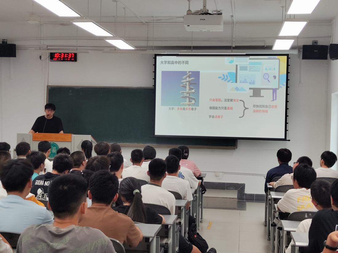 马霆松系主任首先向新生们介绍了软件工程专业的核心特色、课程设置及行业前景,让同学们对该专业有了初步而全面的认识。他强调,软件工程不仅是技术的堆砌,更是创新思维的体现,鼓励大家勇于探索未知,不断追求卓越。随后,马老师详细阐述了高中与大学在学习方式、生活环境及人际交往等方面的显著差异,帮助同学们做好心理调适,快速适应大学生活。他特别提到,大学是自我成长的重要阶段,同学们应学会自主学习、时间管理和团队协作,为未来的职业生涯奠定坚实基础。最后,马老师为新生们描绘了大学四年的学习规划蓝图,从基础课程学习、专业技能提升、科研项目参与到实习实践安排等方面进行了详细指导,鼓励大家制定个人发展目标,并为之不懈奋斗。