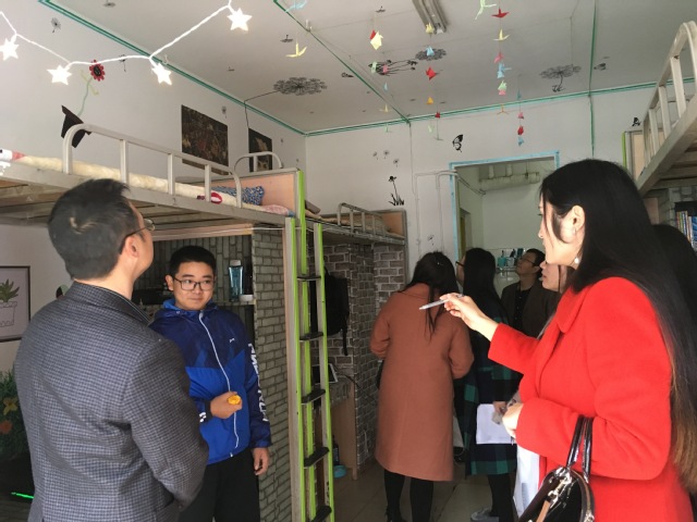 伟德bv国际体育积极响应学校第十五届“不忘初心,梦想装点西华寝”美寝大赛的号召,将美寝精神落到实处,11月16日下午,学院党委副书记毕达平带领学院学工办全体辅导员刘凤丽、赖霞、奉姣、韩静、郭聪、杨丽萍、杨洋一同走访参加寝室美化大赛的学生寝室。