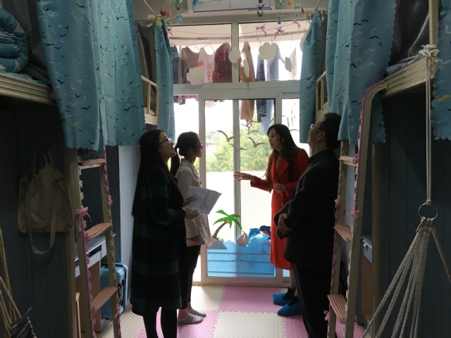 中午2点老师们在锦地苑集合,开始对此次参与美寝的宿舍进行检查。在走访过程中,毕达平和辅导员们认真听取了各寝室解说员对寝室设计理念的介绍,就一些创新设计与学生亲切交流。在交流中,老师们高度肯定了学生们的创意和努力,并告诉大家干净整洁的寝室环境、积极向上的寝室文化不仅是我们健康的充实保证,而且更有利于我们心情的调节,只有大家共同努力,相互协作,才能创造出和谐温馨的寝室氛围和特有的寝室文化。同时,老师们就一些存在的问题提出了针对性的意见和中肯的建议,并希望大家能够把这种美化寝室的意识融入到以后的生活中,创造更美好的大学生活环境。学生们也纷纷表示将结合老师们给出的建议继续进行美化。
