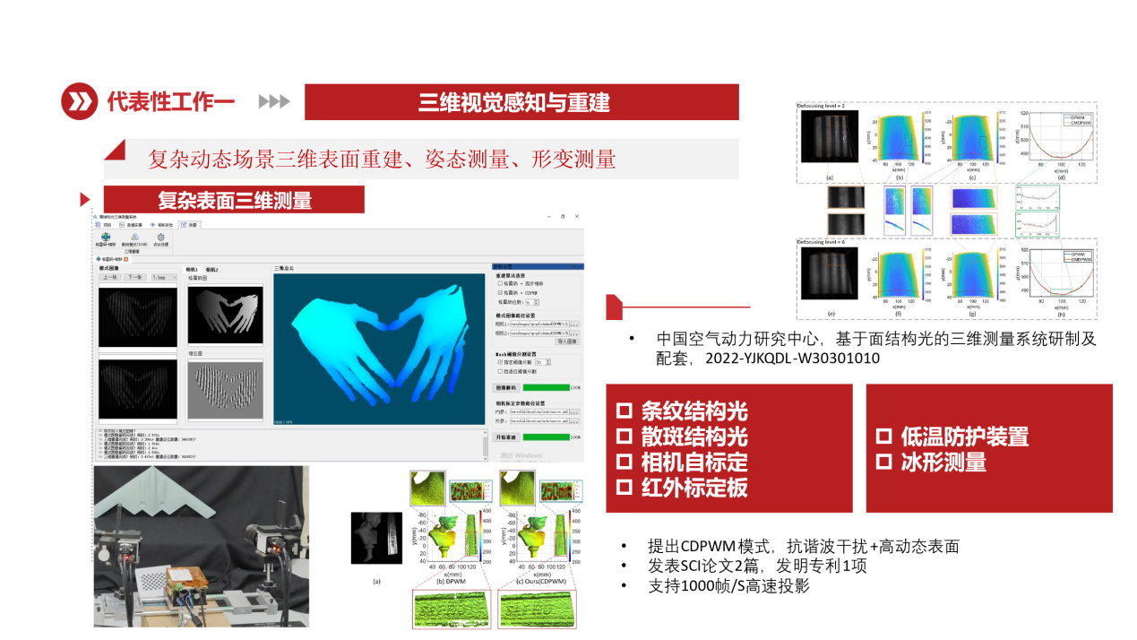 (2)提出深度学习条纹结构光重构算法,实现高速场景三维轮廓测;