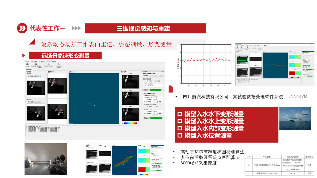 10、四川辨微科技有限公司,模型试验三维形变测量系统,2223782022.07-2023.05。实现大尺度空间目标姿态测量、变形测量。包括标记点检测、三维重建、散斑变形测量。