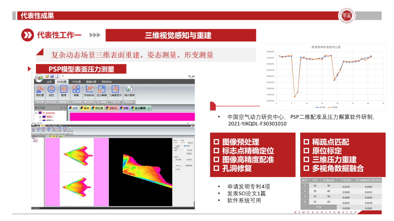 4、中国人民解放军部队,委托开发,2021-YJKQDL-F30301010PSP二维配准及压力解算软件研制,45.5万,2021.032024.03。研究快响PSP测量直升机旋翼旋转运动模糊去模糊处理技术。该项目包含理论研究和软件系统开发,包括非规则的旋转运动模糊图像的复原方法,去除PSP成像过程中产生的噪声、同时不损失模型表面PSP辐射的光强数据。