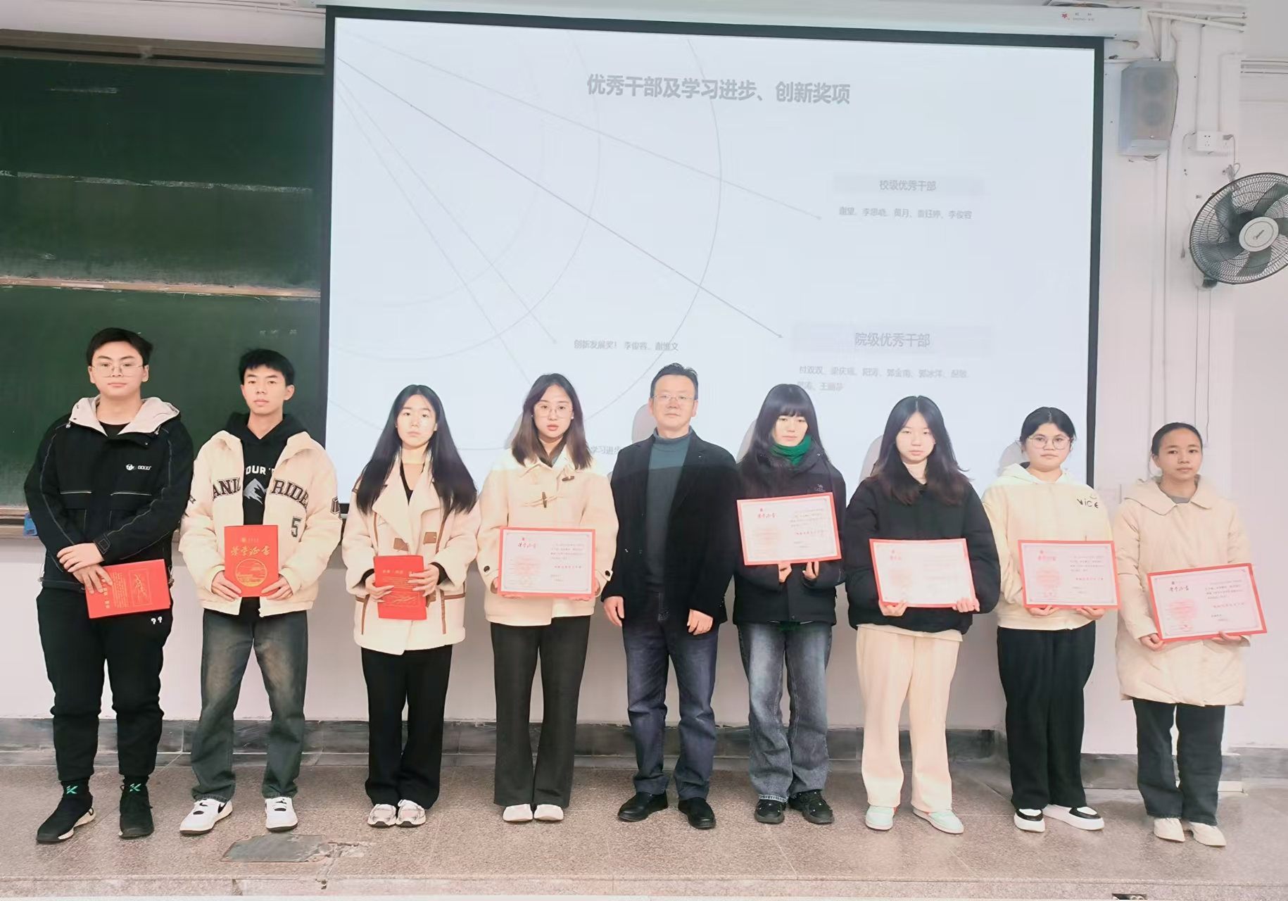 赖老师为获得优秀学生干部同学合影