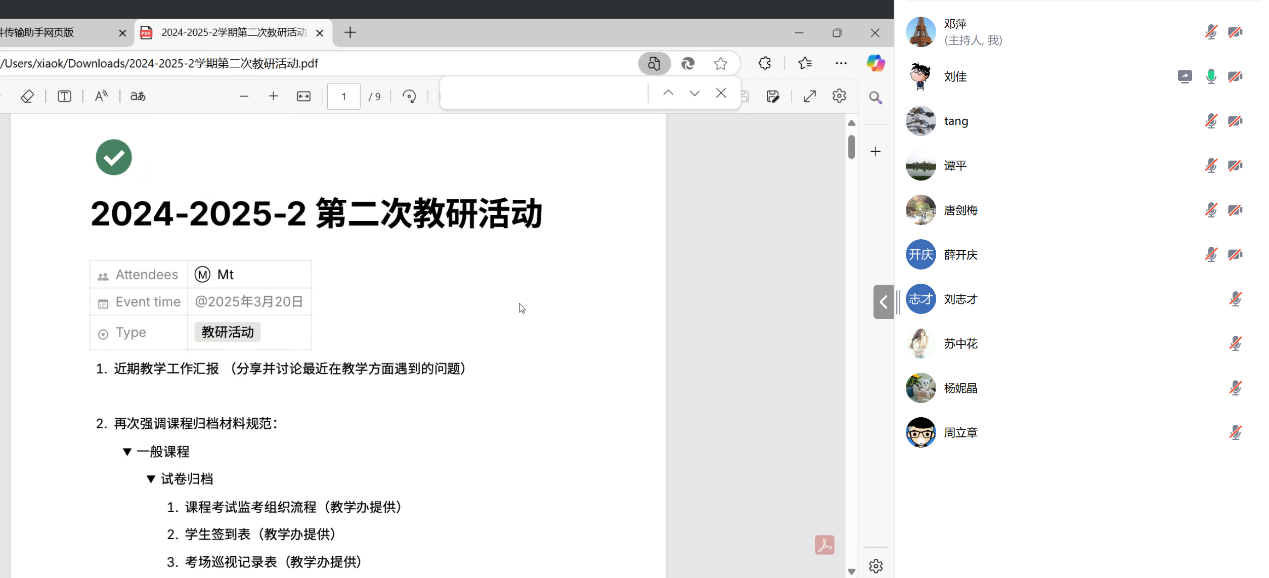 会议再次强调了课程材料归档工作的重要性,要求所有课程负责人严格按照标准格式进行归档,并展示了包括教学大纲、授课计划、教案、课件、作业及实验报告、考试试卷及评分标准等材料的整理要求。对于实践类课程,教师们需关注文件格式改革及达成度分析,以确保归档材料的完整性和科学性。