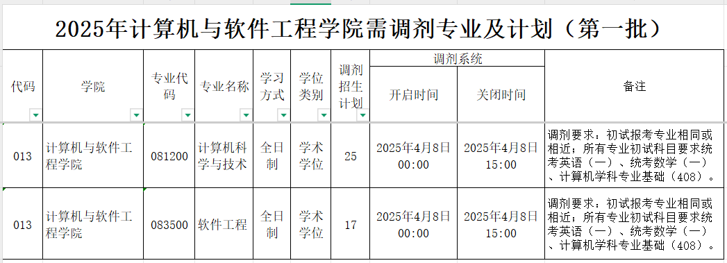 2.初试报考专业相同或相近;所有专业初试科目要求统考英语(一)、统考数学(一)、计算机学科专业基础(408)。