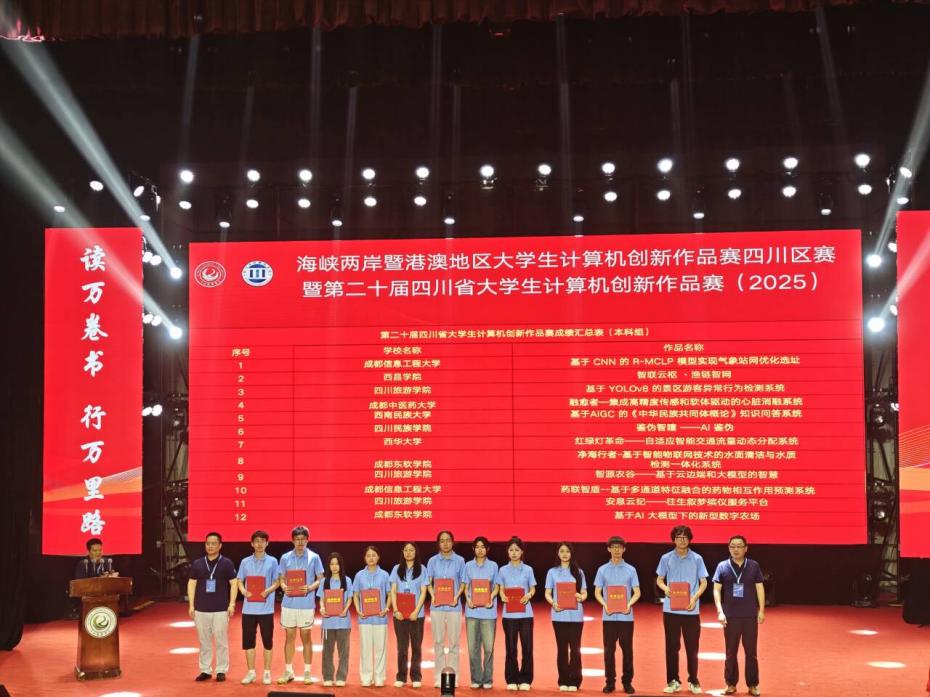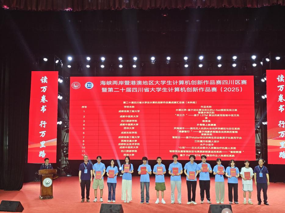 2025年6月21日,由四川省计算机学会主办的2025年海峡两岸暨港澳地区大学生计算机创新作品赛四川区赛暨第二十届四川省大学生计算机创新作品赛在四川旅游学院圆满落幕。本次赛事吸引了成都信息工程大学、成都中医药大学、西南石油大学、bevictor伟德等高校的一百多支队伍同场竞技,旨在展示大学生的创新创作能力。李忠老师和魏冬梅老师带领bevictor伟德7支队伍参赛,这些队伍凭借极具创新性的作品与卓越的团队协作能力,最终荣获两个一等奖、两个二等奖、两个三等奖的优异成绩,并有一支队伍进入全国总决赛。bevictor伟德凭借出色的组织工作,荣获“优秀组织奖”。