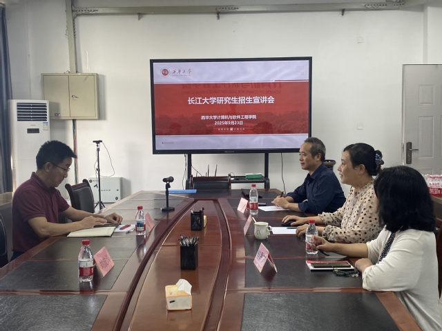 2025年9月23日下午,长江大学计算机科学学院副院长詹炜一行莅临计算机学院交流座谈。学院党委副书记李欣、学院副院长刘克剑、学院副院长曾晟珂参加,会上学院副书记李欣介绍了学院情况,长江大学詹院也介绍了此行目的和意义,体现出我们计算机学院本科学生的优秀品质和技能,受到长江大学计算机科学学院一如既往的青睐。