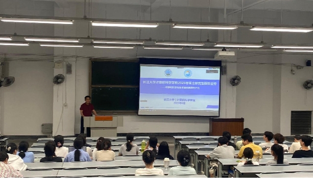 随后,詹炜副院长在6B308教室对我们学院2025届和2026届本科学生做了研究生招生宣讲会。詹炜副院长介绍长江大学和学院的师资、学科建设、研招资讯等基本情况,会后欢迎大家报考长江大学,同学们报以热烈的掌声表示感谢!