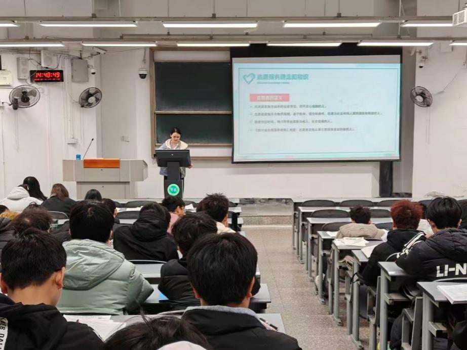 培训中,各班班长借助精心制作的 PPT,围绕三大核心内容展开细致讲解。在志愿服务理念和知识板块,主讲人们结合校园里的志愿活动实例,清晰阐释了志愿者的定义、志愿服务的内涵,以及自愿性、无偿性、公益性等核心特征和量力而行、讲求实效的基本原则,让同学们直观感受到志愿精神的现实意义。班长们详细拆解了志愿活动的策划流程、人员分工与安全保障要点,给出了可直接参考的实操指导。现场同学们听得认真、记得细致,还主动就志愿活动参与方式、服务时长认定等实际问题与主讲人互动交流,学习氛围十分浓厚。