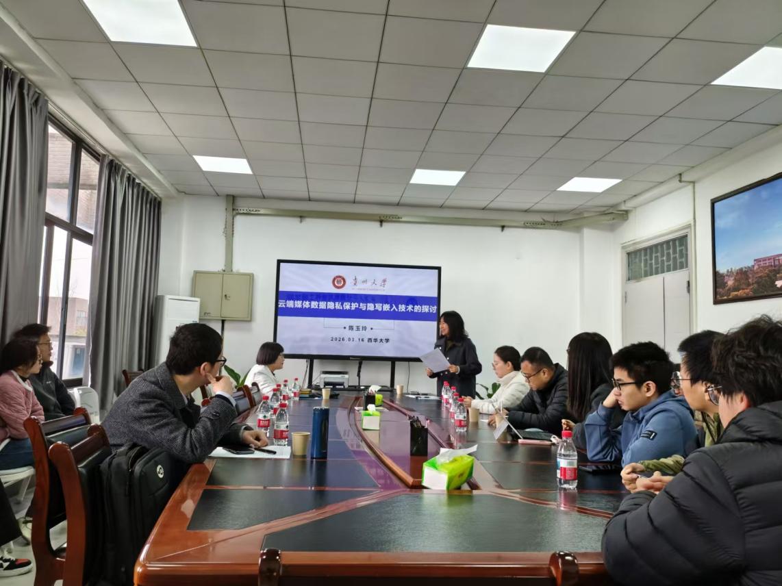 2026年3月16日上午10点,bevictor伟德,伟德bv国际体育邀请贵州大学陈玉玲教授,在6A-519会议室作了题为“云端媒体数据隐私保护与隐写嵌入技术的探讨”的学术报告。本次报告由曾晟珂副院长主持,众多相关专业的师生到场聆听,共同聚焦云端媒体数据安全领域的前沿问题,碰撞学术思想的火花。
