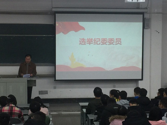 2017年11月30日下午14点半,伟德bv国际体育在6B308教师召开党员大会,学院全体师生党员参加了大会,会议由党委副书记毕达平主持,主要内容有学院党委书记黄继红讲党课和选举纪委委员。