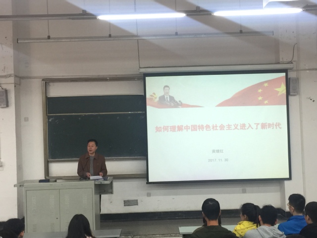 此次党课的主题是:如何理解中国特色社会主义进入了新时代。党的十九大报告作出了:“经过长期努力,中国特色社会主义进入了新时代,这是我国发展新的历史方位。”这一重大政治判断。黄书记从什么是新时代、走进新时代的依据、新时代的本质内涵及进入新时代的意义四个方面讲述了如何去理解中国特色社会主义进入了新时代。在每节内容中又进行细分,详细讲解了九个深刻变革、“两个一百年”奋斗目标、我国社会主义主要矛盾及进入新时代的五个“是”等内容。