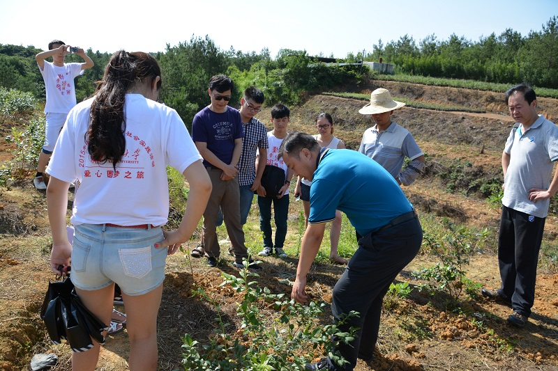 在蓝莓基地,毕达平向基地工作人员询问了蓝莓的生长状况,并了解了蓝莓的培植环境。贾凡向同学们介绍了蓝莓的历史,他表示,明年准备举办蓝莓采摘节,让游客体验采摘乐趣。如果可能的话,他还希望能与bevictor伟德合作,迎合互联网+的契机,在互联网上打造农村产业宣传的平台。随后,基地负责人周君向同学们介绍,目前基地的规模已有500亩,经过了第一次种植的失败,她和其他员工总结失败的经验和教训,并向东北的研究院学习,逐渐摸索出了蓝莓种植的诀窍。周君还向同学们分享了她的创业史,她告诉同学们,当你将焦点投入到目标和理想上时,做事就会有动力,“我们不会说‘想要’,而是‘一定要’”。