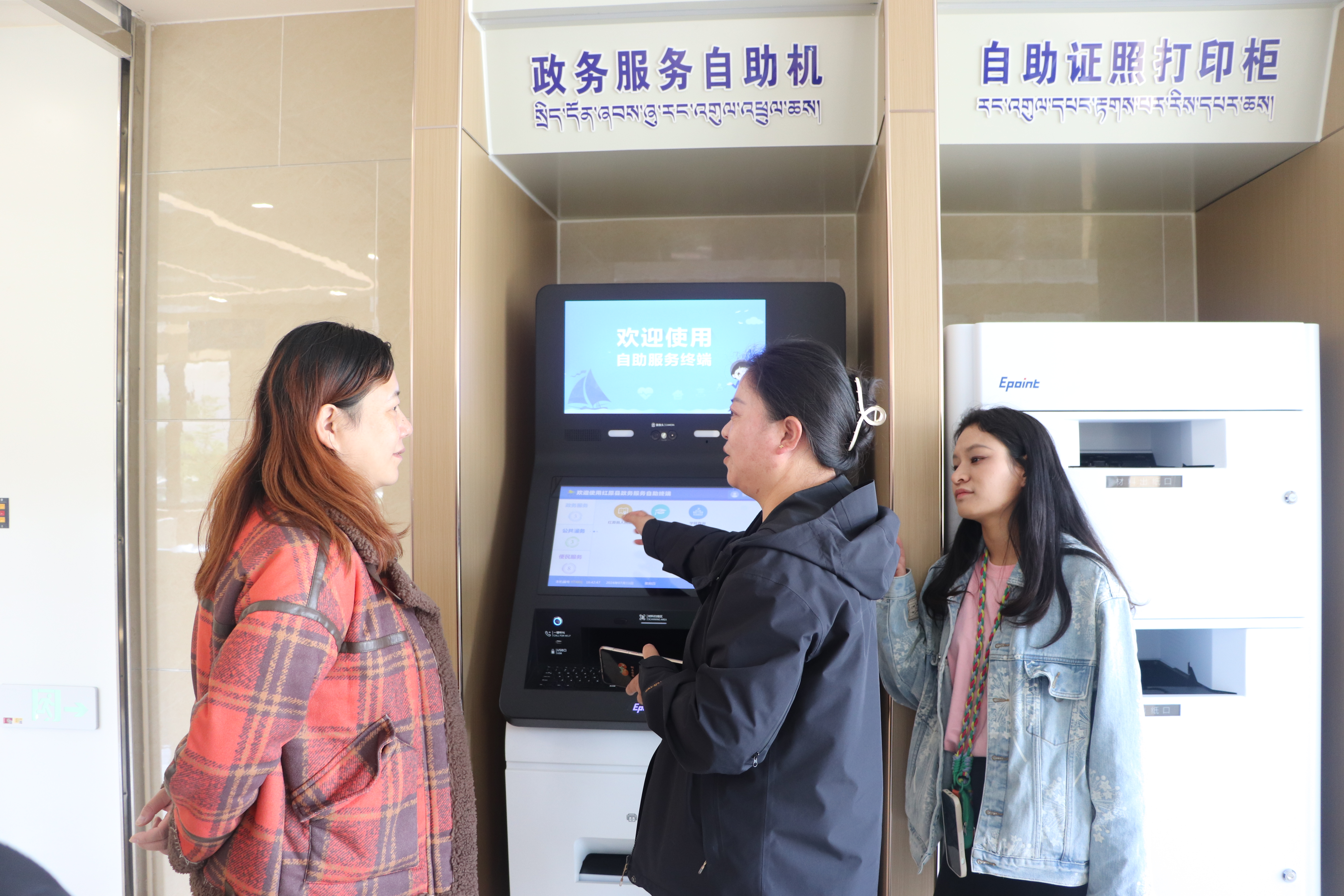 图三 周乃跃副局长为李欣副书记讲解自助服务系统的应用
