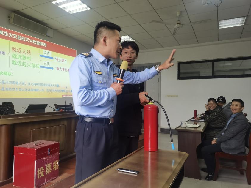 在活动中,成都市利民消防宣传中心的梁教官进行了集体培训,借助PPT课件演示、提问互动等形式,通过令人震撼的图片、视频,以及一个个真实而又发人深省的案例,向学院师生深入浅出地讲解了如何正确开展安全疏散与逃生的知识,并针对不同火灾场景进行了演示。此外,梁教官还着重演示了手持灭火器的使用方法。