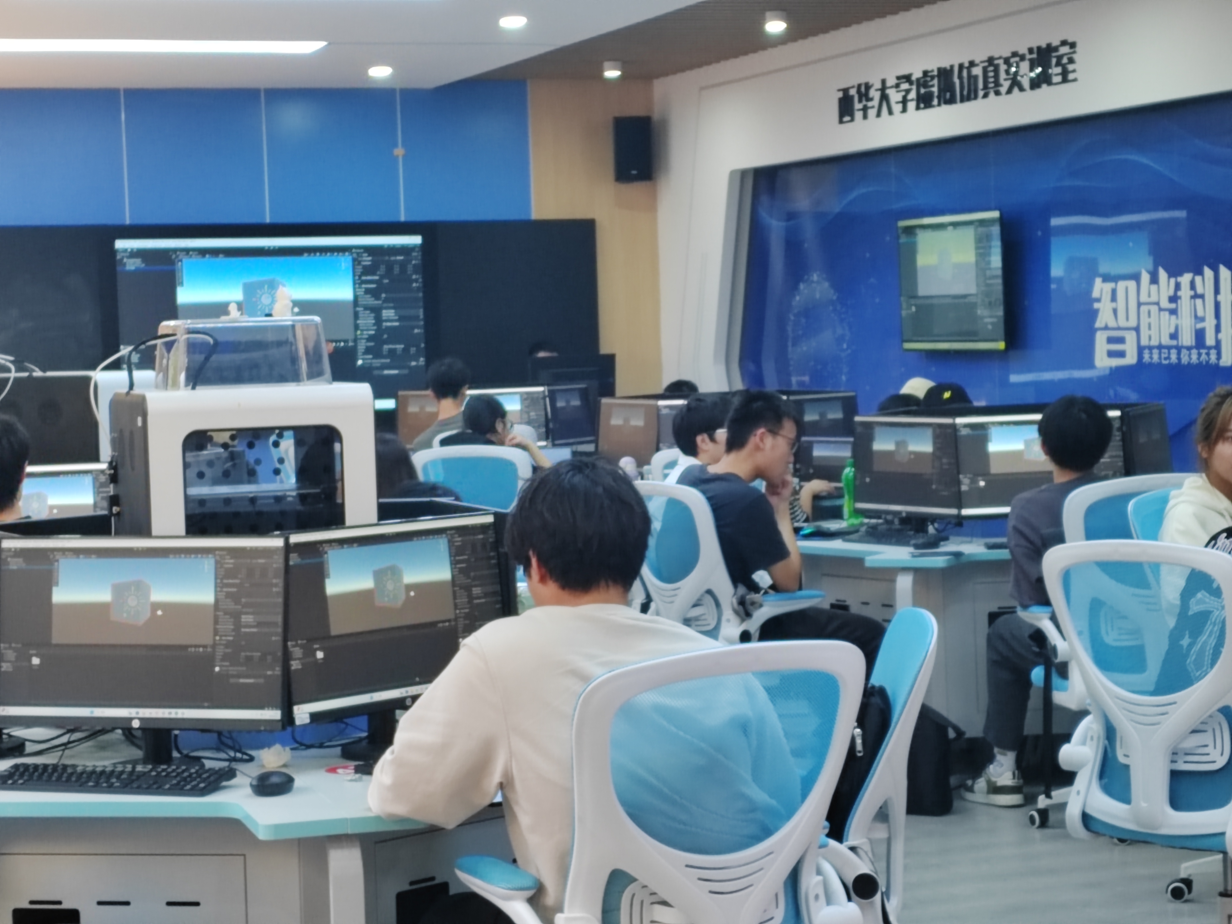 中心建有“综合展示区”、“教学提升区”和“研创体验区”三大功能区域,涵盖教学、实训、三创、科研等诸多环节。教师也可在中心开展各种虚拟现实相关的课程教学和课题研究活动。