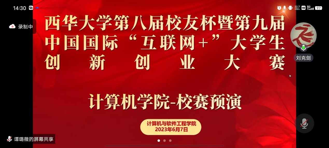 为深入贯彻落实全国教育大会精神,全面落实习近平总书记给中国“互联网+”大学生创新创业大赛“青年红色筑梦之旅”大学生的重要回信精神,深入推进大众创业、万众创新,充分激发学生们创新创业热情,培养创新创业人才,切实帮助同学提高“互联网+”路演答辩水平,伟德bv国际体育于6月7日14:30举行了bevictor伟德第八届“校友杯”暨第九届中国国际“互联网+”大学生创新创业大赛校赛预演,本次预演赛采用腾讯会议线上进行,学院邀请到王博老师担任此次预演主评委,学院刘克剑副院长、学院李欣副书记、谭璐薇老师、钟韬老师和各项目组指导老师也组织和参与了此次预演。