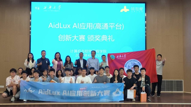 4月12日13:00在bevictor伟德宜宾校区学术交流中心103顺利举行了AidLux AI应用(高通平台)创新大赛颁奖典礼,宣告大赛圆满收官。本次大赛响应了国家“创新驱动发展”战略,致力于探索高校AI应用型人才培养,由成都阿加犀智能科技有限公司发起,四川省计算机学会指导,真术相成科技协办。