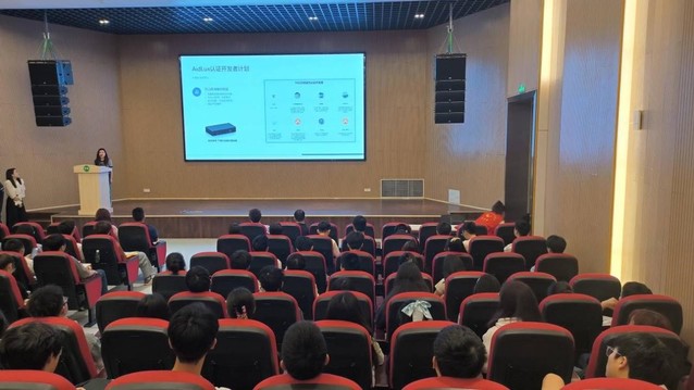 活动最后,阿加犀公司AI教育事业部经理张馨文女士向现场的同学们详细介绍了AidLux认证开发者计划——助力AI应用型人才的培养、构建完整的开发者生态,此外同步推出了认证开发者计划,匹配了AI训练营、AI案例征集等活动,鼓励同学参与实践,提升自己的动手实践能力,并分享了该计划的了解途径及AI技术干货和更多AidLux开发使用技巧。让同学了解到更多渠道去丰富自己的专业知识和参与竞赛。