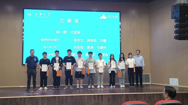接下来就是激动人心的颁奖环节,本次大赛经过激烈比拼,宜宾校区学生凭着自身的努力奋斗和优秀表现,共有20名学生获奖。其中新生赛道5名,挑战赛道5支队伍,共计15名。活动现场,学院领导、嘉宾们为获奖同学颁发了奖状、精美的奖品和奖金。
