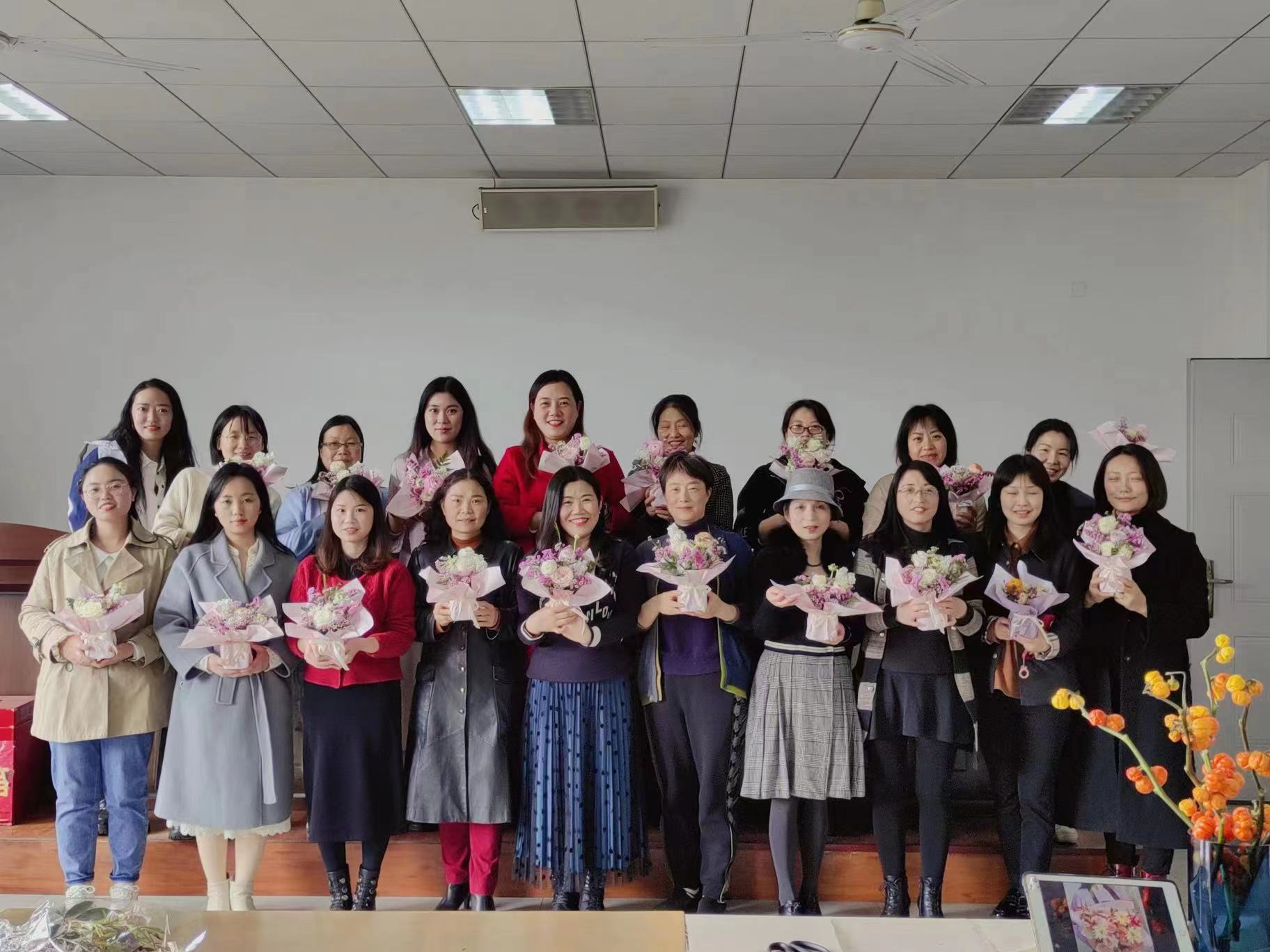 美丽别致、层次丰富的花卉在花篮上悄然绽放,大家对自己的作品爱不释手。最后,参与插花活动的女教师合影留念,大家在欢声笑语中结束了此次活动。