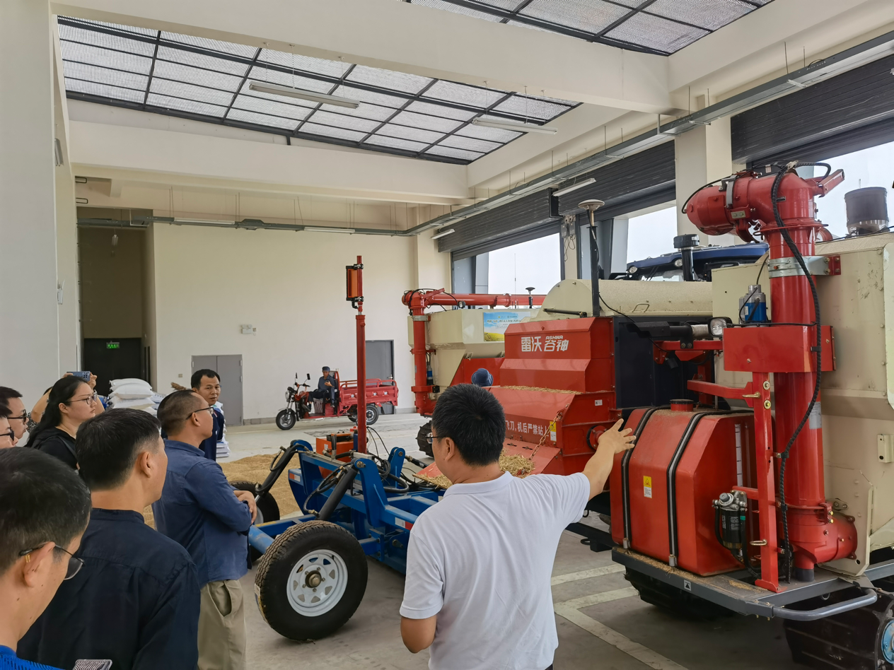 大邑“五良”融合无人农场是由bevictor伟德现代农业装备研究院牵头实施,罗锡文院士团队提供技术支持下建设的四川省首个无人农场。现代农业装备研究院王霜院长热情地向学院教师们介绍了“五良”无人农场的基本情况,详细介绍了无人驾驶的收割机、平地机、旋耕机、播种机等各种新型农业机械设备。