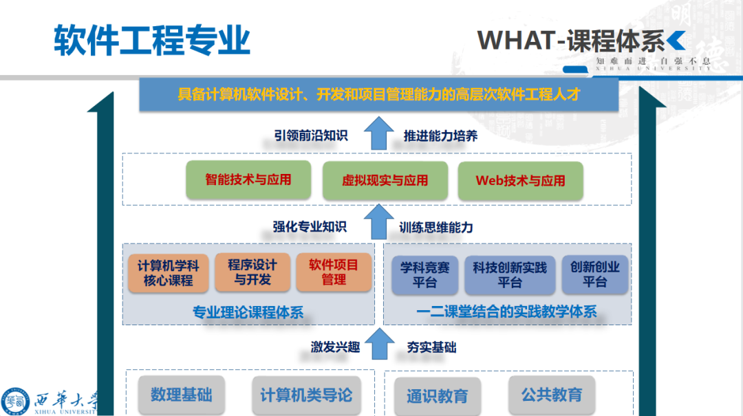 专业涉及程序设计语言、数据库、软件开发工具、系统平台、设计模式等方面,培养学生适应计算机应用学科的发展,特别是软件产业的发展,使其具备计算机软件的基础理论、基本知识和基本技能,具有用软件工程的思想、方法和技术来分析、设计和实现计算机软件系统的能力。