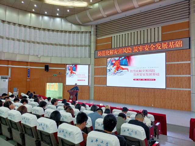 讲座上,毕书记向同学们介绍校园多发安全事故的相关案例,通过丰富详实的案例剖析,深入浅出地讲解了消防安全的重要性,警示大家要掌握基本的消防安全知识并提升自我的应对能力。同时,毕书记指出,随着夏日临近,溺水事故也是危害校园安全的一大棘手问题,夏季游泳需在正规场所且有专业人员监护的水域游泳,切实保证自己的生命安全。毕书记还强调,消防安全设施相对少的地方要着重注意,这类情况越可能存在安全隐患。同时也要注重细节,许多事故正是由于不注重细节最后演变成不愉快的结局。最后,毕书记表示同学们要明确提升校园消防安全意识,将校园消防安全看作每一位同学的必修课。只有将消防安全意识聊熟于心,才能共同维护校园消防安全。