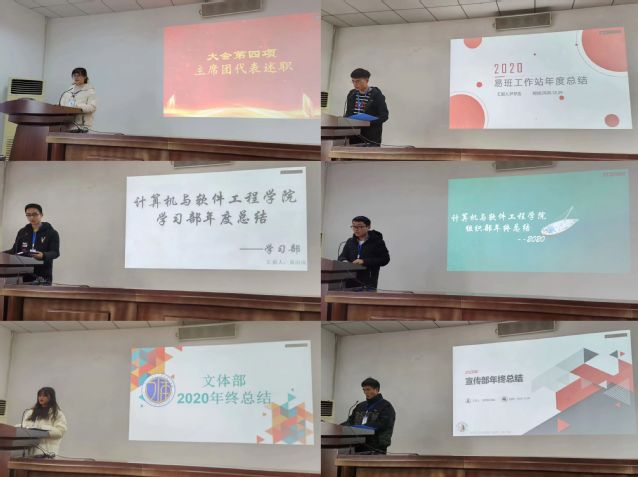 大会以一段视频总结回顾各个部门过去一年的成绩,不仅展现各部门这一年的劳动成果,也体现其分工明确、各司其职的优点。大会以全体到会成员合唱团歌正式开启。主要学生干部分别对负责工作依次总结,回顾这一年来学生工作,并展望明年的工作。紧接着,对优秀部门,优秀部长,优秀干事进行了表彰,希望大家在以后的日子里也不忘初心砥砺前行。