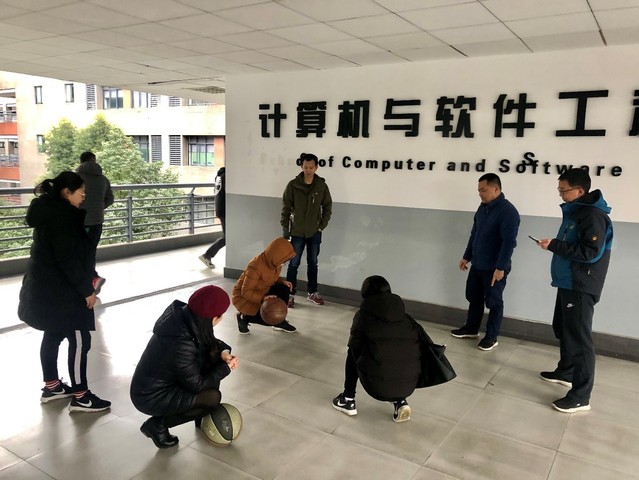 比赛项目分有1分钟跳绳、1分钟拍篮球。拍篮球比赛按1分钟时间以拍球次数计分;跳绳比赛按1分钟时间以跳绳个数计分。外面寒风凛凛,但整个四楼平台却是春意盎然,大家三五成群或是拍球练习,或是跳绳热身,或是互相研讨取经:如何把球拍得又多又快,单脚还是双脚跳绳更省劲……,平时不显山不露水的高手们一次次突破新高的跳绳报数声引得满堂喝彩,一次次高频的拍球,让围观人群啧啧称奇,看得人眼花缭乱,五六个“助理裁判”都在帮忙计数,唯恐少数了一个,欢声笑语,洋溢在整个四楼。