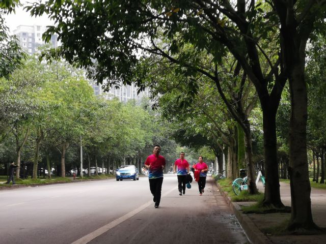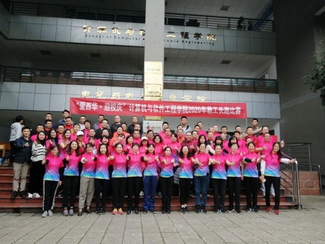 本次比赛共有70余名约90%的教职工报名参赛,总赛程约3公里。下午2点30分,运动员们就早早聚集在长跑起跑点周围,精神饱满地开始了热身运动。比赛开始前,学院工会贾年老师向比赛选手们宣布了比赛内容和规则。3点整,随着发令员的一声哨响,运动员们奋力冲出起跑线,拉开了比赛的序幕。比赛虽时值秋日,天气微冷,但挡不住教职工高涨的热情。教职工们统一穿着玫红色T恤,长长的跑步队伍在校园里形成了一道别样的风景。运动员们你追我赶,秋日的校园里因有这群健康、积极、朝气蓬勃的计算机人而显得更加美丽。老师们的积极参与也激起了学生们的热情,从临江苑操场到四食堂,一路上总有围观的同学争相为自己的老师助威加油。
