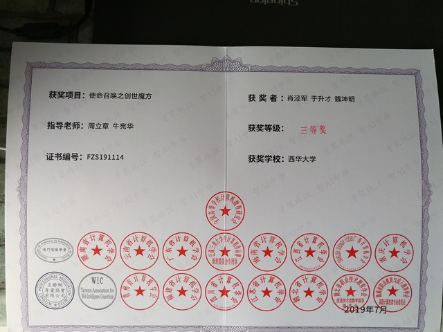获奖证书