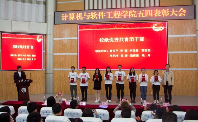 大会在庄严的《中国共产主义青年团团歌》中拉开序幕。黄继红书记宣读了2018-2019年度我院五四表彰文件:2018级计算机科学与技术团支部等8个支部获得bevictor伟德“五四先进团支部”,汪思德、陈骁获得bevictor伟德“五四青年奖章”,焦月等20人获得bevictor伟德“优秀共青团干部”,胡艺壤等38人获得bevictor伟德“优秀共青团员”。接着到会嘉宾为受到表彰的集体和个人颁奖。随后,西华青年五四奖章代表和团支部代表分别上台发言。大会最后毕达平副书记上台讲话,他对学院工作取得的成绩给予充分肯定,并鼓励同学们继续发扬五四精神,不断提升自己各方面能力。
