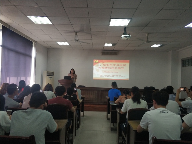 党总支书记刘凤丽为大家详细讲解了毕业生党员组织关系转出注意事项,为毕业生党员在省内省外及线上线下的组织关系转接流程、组织关系转往地、以及党员材料交付等系列问题作了详细介绍。同时对毕业生党员提出要求,希望大家继续发挥带头模范作用、继续做好桥梁纽带作用,倡议党员协助辅导员做好毕业生文明离校工作。为进一步强化毕业生党员对党组织关系转接的认识,学院党委秘书杨丽萍为在场毕业生党员进行了党组织关系转接案例分享。