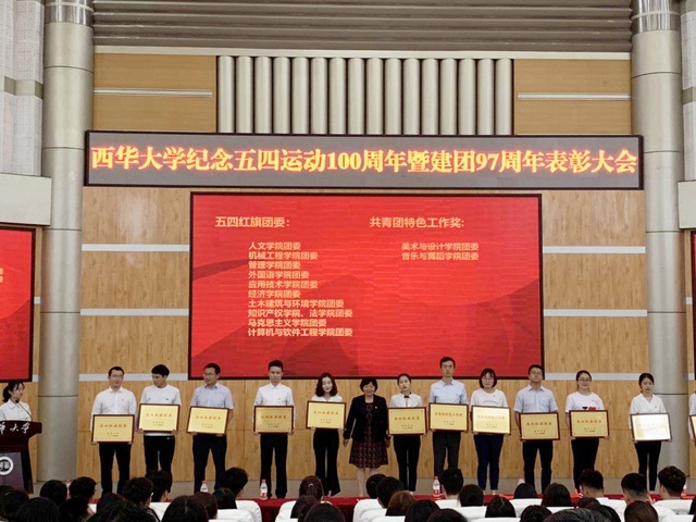 在本次表彰大会上,我院2016级物联网工程专业汪思德同学作为受表彰先进个人代表进行了发言。2016级计算机科学与技术4支部、2017级物联网工程3支部及2018级软件工程3支部等6个团支部被评为校“五四先进团支部”,2016级学生汪思德、陈骁荣获“西华青年五四奖章”。