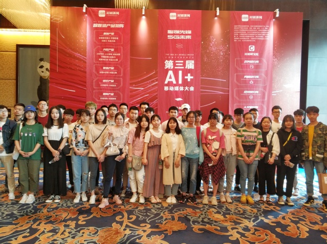 2019年4月28日,由四川网信办、四川日报报业集团指导,封面新闻主办的第三届AI+移动媒体大会在成都举行。为让同学们进一步认识当代IT技术的前沿科技,了解所学专业知识在社会各方面的广泛应用,伟德bv国际体育组织各年级学生代表共46人参加了此次大会,由学院团委副书记杨倩担任带队老师。