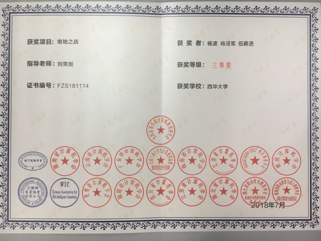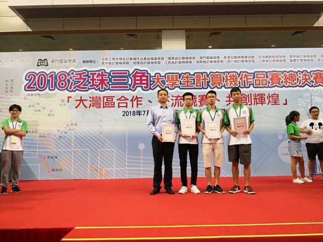 2018年7月2日至5日,由全国高等学校计算机教育研究会及泛珠三角大学生计算机作品赛组委会共同举办的2018泛珠三角大学生计算机作品赛本科组总决赛在澳门举行。 由校教务处副处长刘克剑老师指导的3名同学在此次比赛中获得了本科组三等奖和最佳展示奖的佳绩。