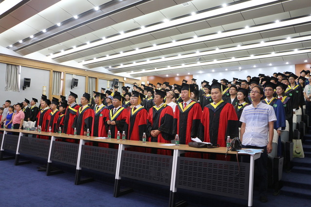 首先全体齐唱国歌。会上,院长何明星讲话,他希望同学们牢记家国情,珍惜韶华岁月,不忘初心,砥砺前行。教师代表王小明老师讲话,希望同学们以高度的责任感对待自己、家人和国家,迎难直上,继续学习。研究生代表刁云澜同学和本科生代表郭娇娇同学发言,感谢四年里学院和老师对于自己的帮助,激动的表达中也无不流露着对大学的依依不舍。随后,由学院党委书记黄继红宣读优秀毕业设计(论文)获奖文件,由副校长费凌教授和学院4位学位委员会成员为王小丽等8位获得者颁奖。最后,由伟德bv国际体育学位评定分委员会主席、院长何明星教授宣读授位决定,由副校长费凌教授为每一名学位获得者授予学位。