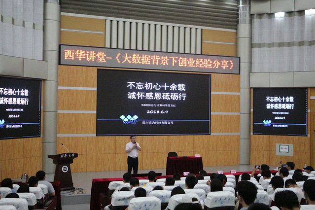 6月9日晚19:00,伟德bv国际体育在四教报告厅举办西华讲堂——大数据背景下创业经验分享会,主讲人是1998级优秀校友、四川乐为科技有限公司董事长苏方红。与会人员有:伟德bv国际体育团委书记韩静、副书记申小凤、学院学生会全体成员以及2017级新生。