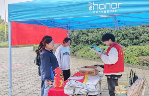学院组织学生会成员在郫都校区第四教学楼门口开展了“119消防知识问答”活动。活动主要通过问答方式展开,邀请往来学生参与,向他们提出消防安全相关的问题,包含火灾扑救、火灾报警、灭火器使用、火场逃生技巧等方面,并为正确回答问题的同学送上小礼品,邀请参与同学在“全民消防,生命至上”横幅上郑重签字。